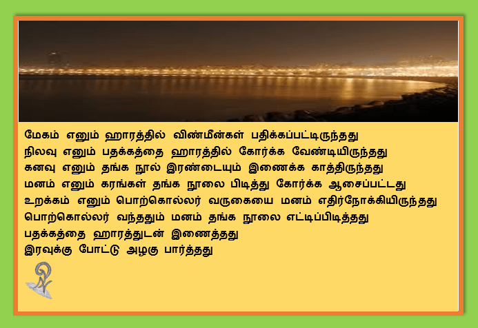 இரவுக்கு போட்டு அழகு பார்த்தது by நா.பார்வதி on June 1, 2020December 2, 2020 Share this: Click to share on X (Opens in new window) X Click to share on Facebook (Opens in new window) Facebook Like Loading... Related