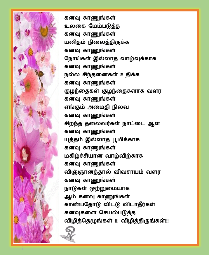 கனவு காணுங்கள் by நா.பார்வதி on June 1, 2020December 2, 2020 Share this: Click to share on X (Opens in new window) X Click to share on Facebook (Opens in new window) Facebook Like Loading... Related