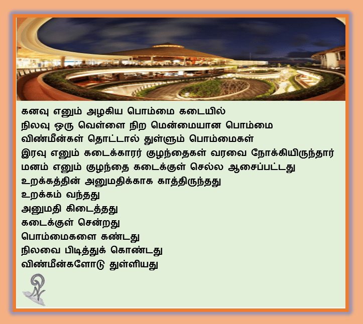 விண்மீன்களோடு துள்ளியது by நா.பார்வதி on June 1, 2020December 2, 2020 Share this: Click to share on X (Opens in new window) X Click to share on Facebook (Opens in new window) Facebook Like Loading... Related