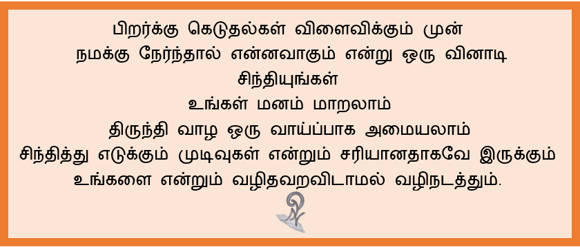 சிந்தனை by நா.பார்வதி on June 9, 2020December 2, 2020 Share this: Click to share on X (Opens in new window) X Click to share on Facebook (Opens in new window) Facebook Like Loading... Related