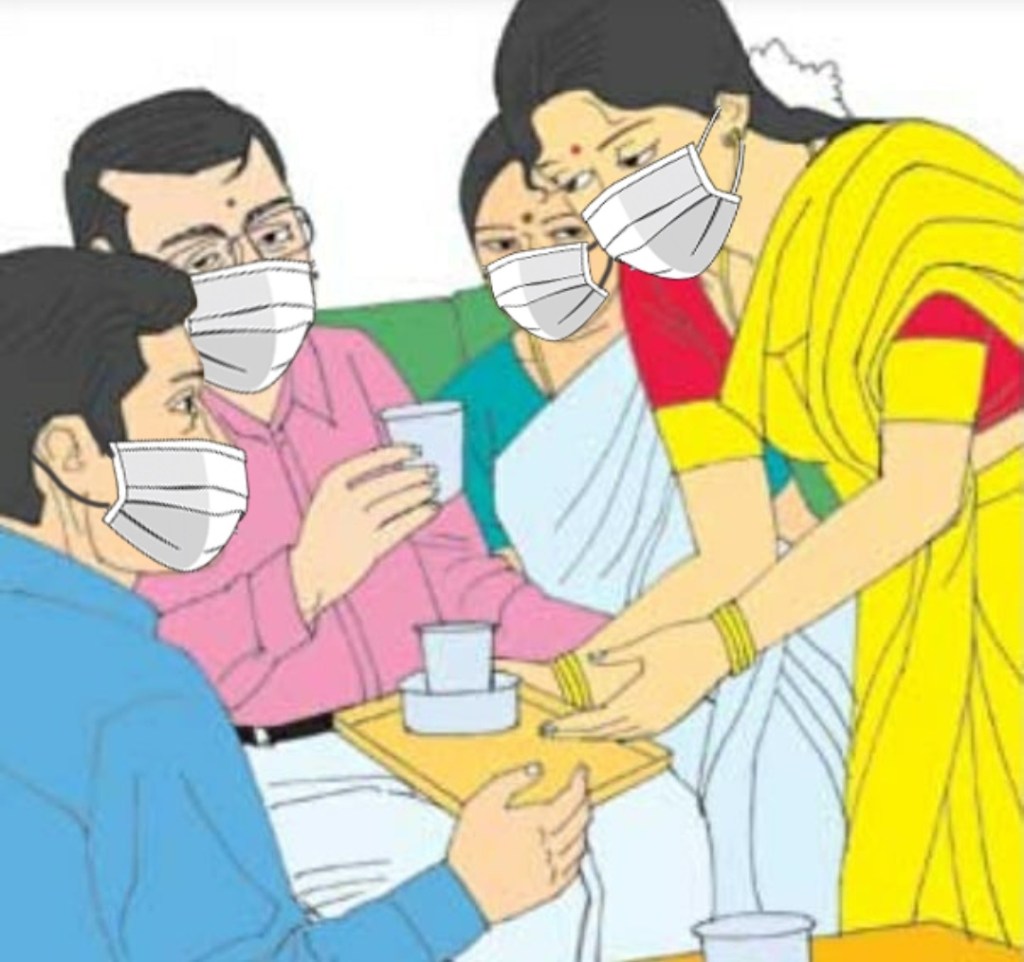 மாப்பிள்ளையின் அத்தை: முன்னெல்லாம் பொண்ணைப் பார்த்தா மூக்கும் முழியுமா நல்லா லட்சணமா இருக்கான்னு சொல்லுவா…ஆனா இப்போ என்னன்னு சொல்லறது? முகத்தில் பாதியும் மாஸ்க் மறைச்சுண்டிருக்கே!!!!