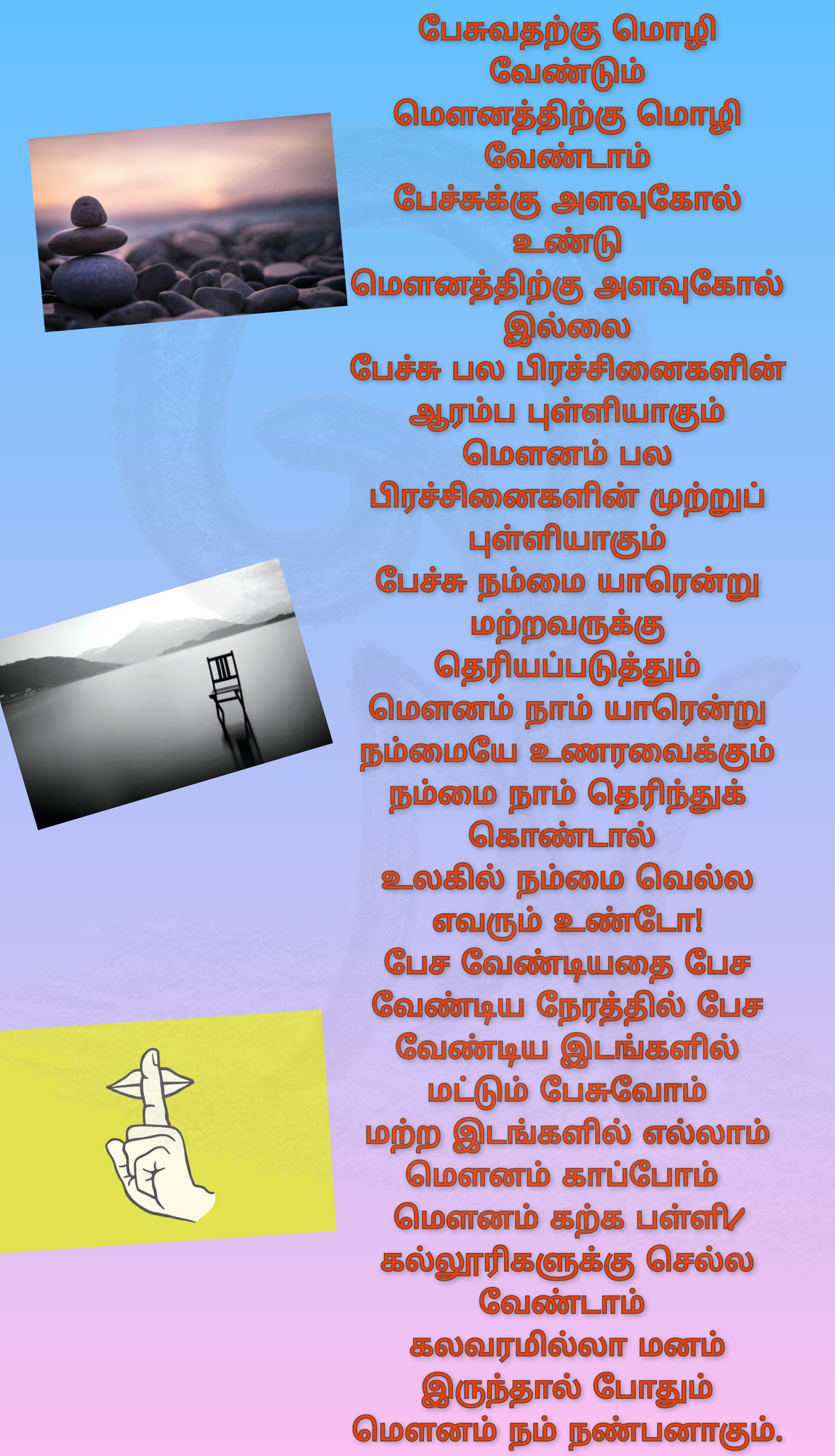 மௌனம் by நா.பார்வதி on June 27, 2021June 27, 2021 Share this: Click to share on X (Opens in new window) X Click to share on Facebook (Opens in new window) Facebook Like Loading... Related