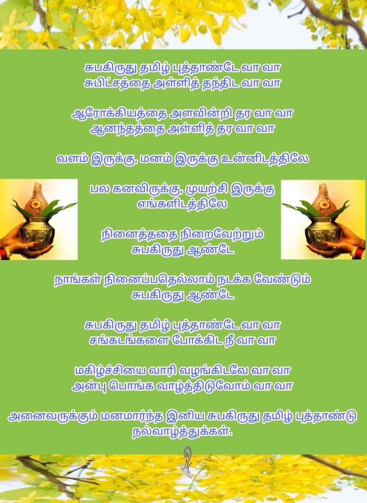 தமிழ் புத்தாண்டு 2022 by நா.பார்வதி on April 14, 2022April 14, 2022 தமிழ் புத்தாண்டை வரவேற்போம் வளங்கள் அனைத்தையும் பெற்றிடுவோம் Share this: Click to share on X (Opens in new window) X Click to share on Facebook (Opens in new window) Facebook Like Loading... Related
